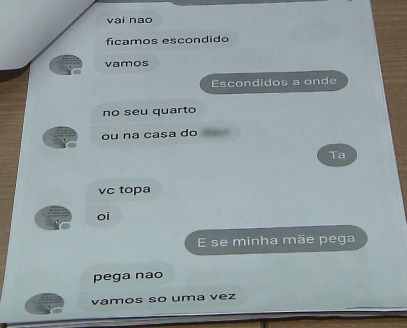 Em uma das mensagens salva no celular e que foi impressa pela delegada, o rapaz insiste em encontrar a criança, que responde escrevendo que tem apenas 11 anos. Em outro trecho da mesma conversa, ele continua a insistir e a criança diz que tem medo que a mãe descubra.