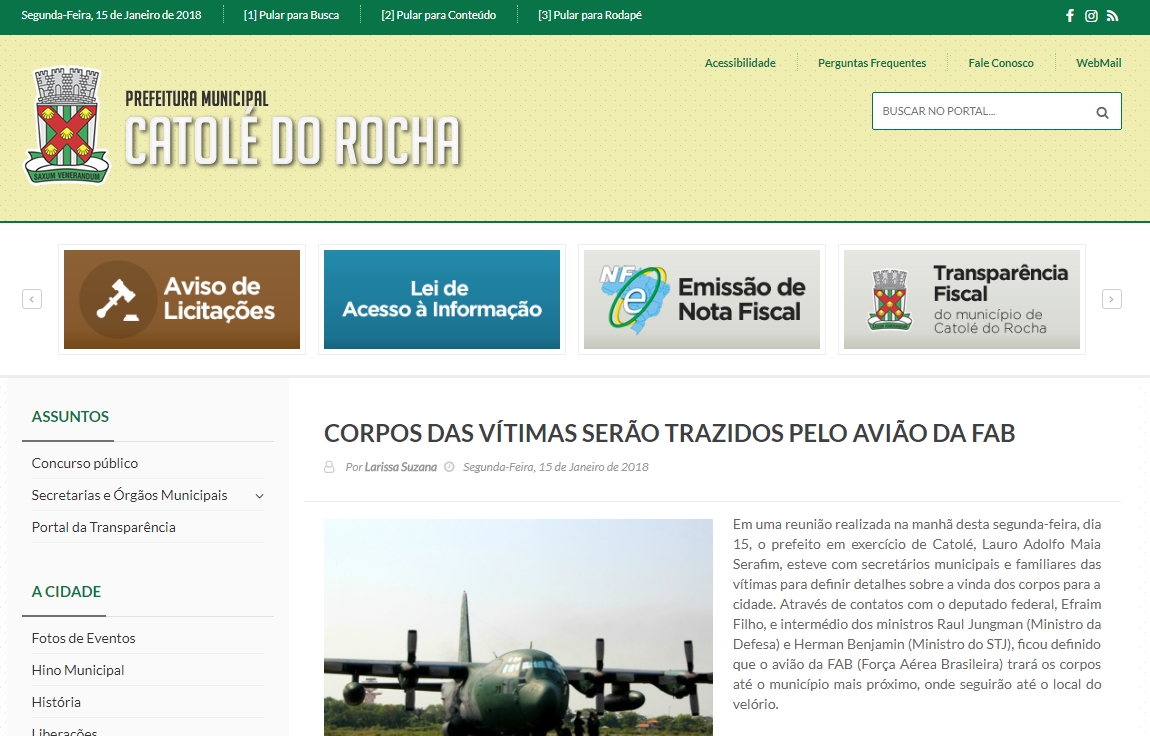 Através de contatos com o deputado federal, Efraim Filho, e intermédio dos ministros Raul Jungman (Ministro da Defesa) e Herman Benjamin (Ministro do STJ), ficou definido que o avião da FAB (Força Aérea Brasileira) trará os corpos até o município mais próximo, onde seguirão até o local do velório. A informação foi da assessoria da prefeitura.