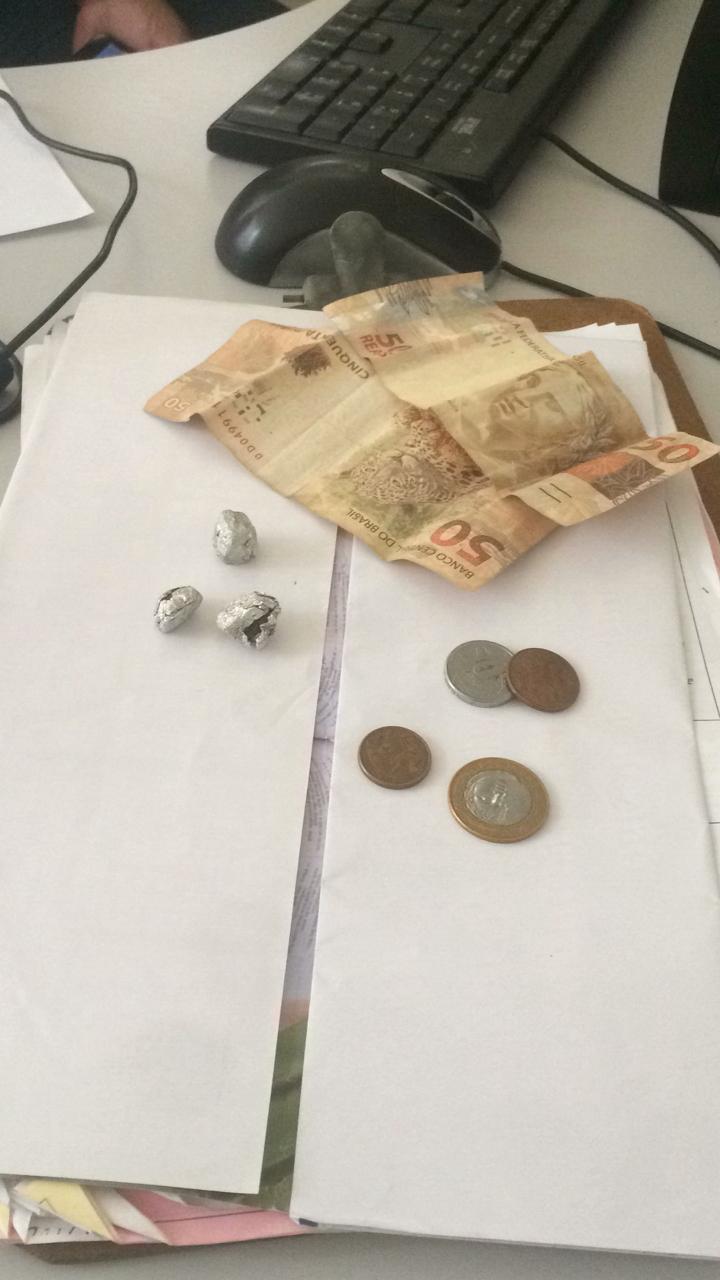 Após a prisão do suspeito, que foi localizado tentando foragir da ação policial em meio a um matagal, a polícia ainda encontrou três papelotes de maconha, que provavelmente seria do acusado, pois foi encontrada no mesmo local da prisão, com ele, ainda foi encontrada uma quantia de pouco mais de R$ 100, que pode ter sido proveniente da venda dos objetos furtados.