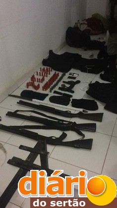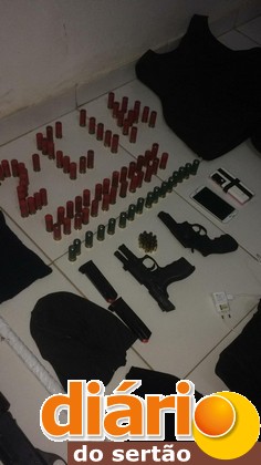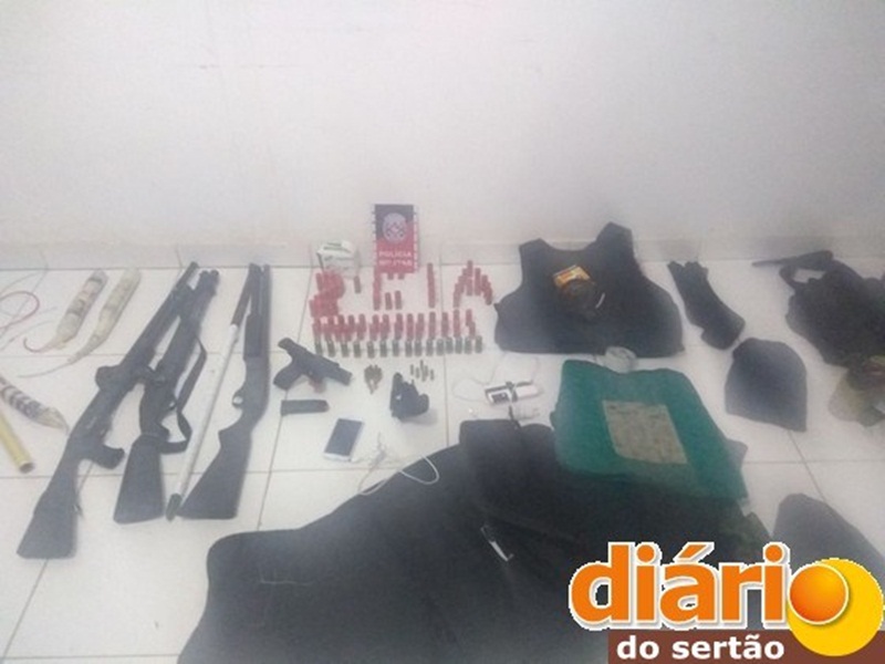 Ao todo foram apreendidos: 03 emulsões de dinamite prontas para serem utilizadas, 03 Espingardas Cal 12, 01 Pistola Cal .40, 01 Revólver Cal 38, 03 Coletes Balísticos, 83 munições Cal 12, 19 munições Cal .40, 06 munições Cal 38, 03 tocas ninjas, além de 03 veículos, sendo 01 Celta prata com queixa de roubo e no momento utilizando a placa fria PMP 8879, Um Gol Preto, placa HWM 3284, sem restrição de roubo e uma moto Bros vermelha, placa KKM 2873, também sem restrição de roubo.
