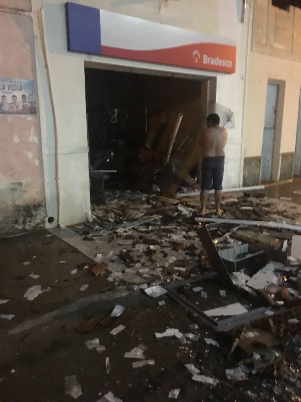 O cenário deixado pelos bandidos é de destruição. O prédio ficou danificado pela ação dos altos explosivos usados pelo bando.