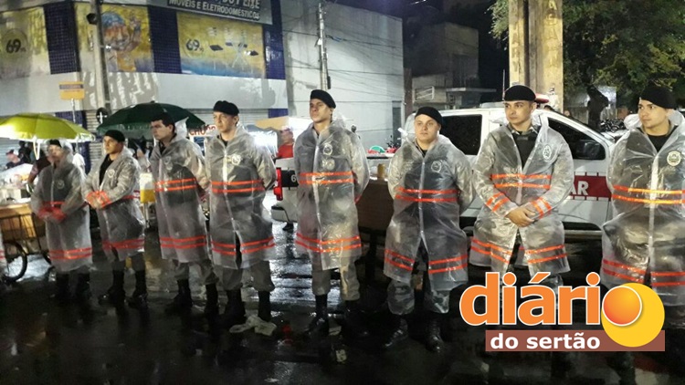 Mesmo com chuva, Polícia Militar garante a segurança na 3ª noite do carnaval da cidade de Sousa