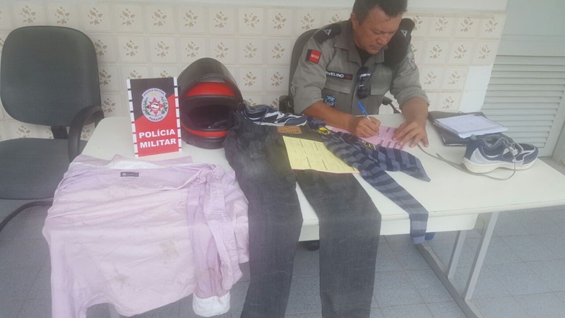 PM recupera motocicleta roubada e apreende roupas usadas em assalto a posto de combustíveis no Sertão