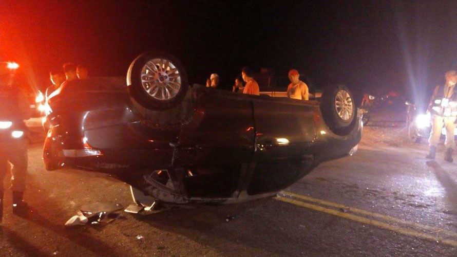 Carro capotou e alguns ocupantes foram arremessados para fora