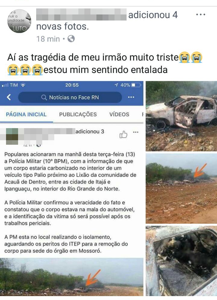 Uma irmã do cajazeirense usou sua rede social Facebook para divulgar o fato, que definiu como “tragédia”.