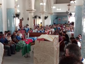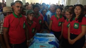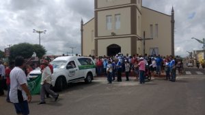 Após a missa de corpo presente que reuniu amigos e familiares, autoridades locais e uma representação da Federação dos Trabalhadores Rurais Agricultores e Agricultoras Familiares do Estado do Ceará, o cortejo retomou o trajeto.