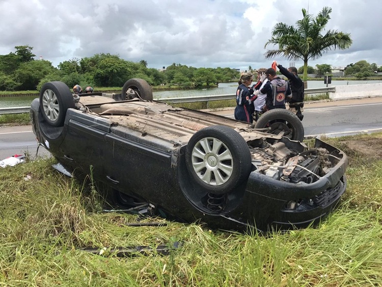 Um motorista perdeu o controle do carro e capotou no viaduto das Três Lagoas, no bairro de Oitizeiro, em João Pessoa, na manhã deste domingo (25). Segundo informações repassadas pela Polícia Rodoviária Federal (PRF), é provável que o acidente tenha sido provocado pelo fato dos pneus do veículo estarem lisos e da pista estar molhada.