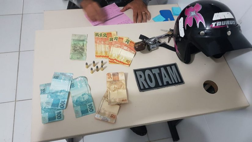 Em poder do suspeito, a PM recuperou o montante de R$ 521,00, parte do dinheiro roubado.