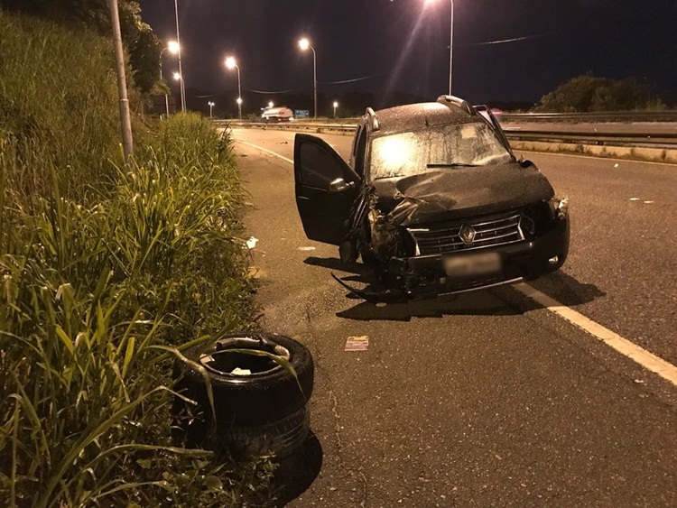 Uma das rodas do veículo se soltou. Havia duas pessoas dentro do carro, no entanto, ninguém ficou ferido.