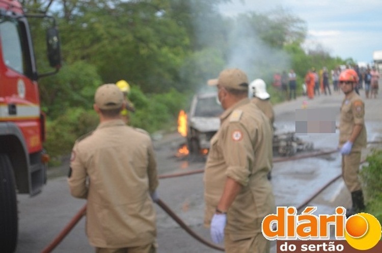 Na moto estavam dois ocupantes, o condutor e uma passageira, que morreram no local. Com o impacto entre carro e moto houve um incêndio, que queimou totalmente os veículos. “O condutor da moto e a passageira foram a óbito no local”, Disse o PM.