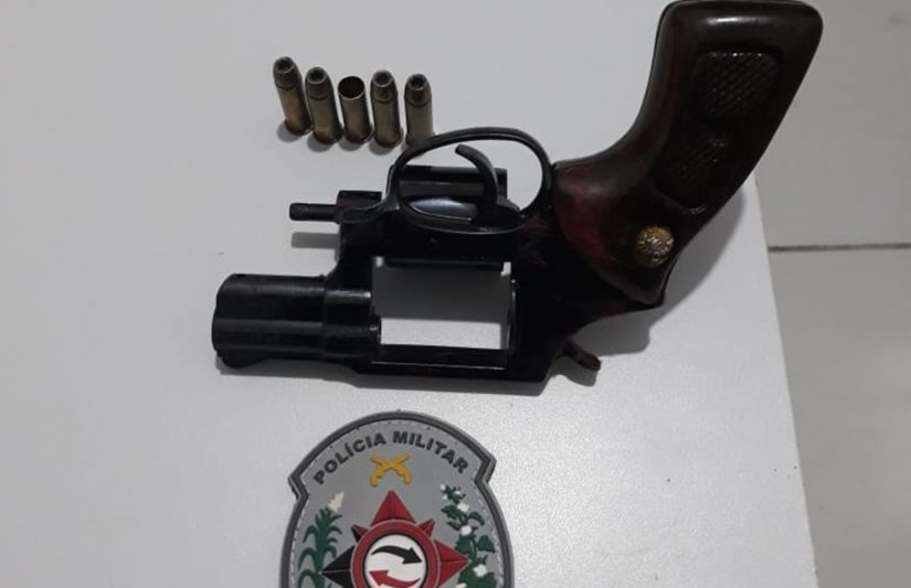 As guarnições continuaram as diligencias e instantes depois localizaram o suspeito, um homem de 37 anos de idade, em frente a sua residência, localizada no Bairro Jardim Oásis, momento em que o ele foi abordado e confirmou os fatos, inclusive indicou onde estava a arma utilizada, um revólver Cal 38, municiado com 04 cartuchos intactos e 01 deflagrado, a qual foi apreendida.