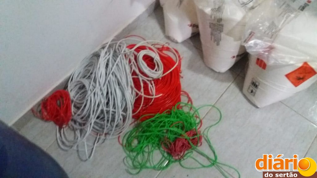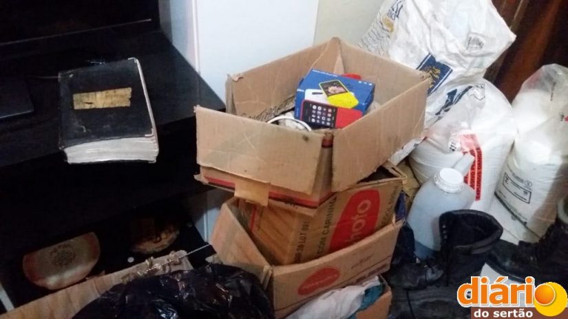 No interior da casa a Polícia Militar encontrou 03 (três) espingardas, calibres 32, 36 e uma outra com adaptação para calibre 38 mm, diversos cartuchos de vários calibres, muita pólvora, grande quantidade de espoletas, aproximadamente 60 kg de explosivos de demolição tipo B, grande quantidade de cordão detonante, um recipiente plástico azul contendo material explosivo, uma motocicleta Honda Titan preta, placa MNW 4941 – Novo Olinda com restrição (placa fria), veículo Fiat Uno branco, placa OEZ 6264 – Santana de Mangueira.