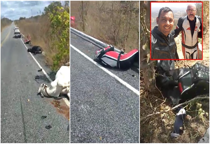 Dois motociclistas morreram após sofrer um acidente envolvendo animais na pista, na Rodovia PE-390, entre as cidades de Serra Talhada e Floresta, no vizinho estado do Pernambuco.