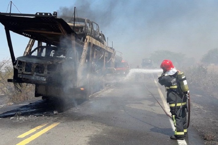 A Polícia Militar chegou primeiro ao local e acionou o Corpo de Bombeiros de Sousa e de Cajazeiras, mas as chamas já haviam consumido toda a carroceria com os veículos. A cabine do motorista conseguiu ser separada antes de ser atingida pelo fogo.