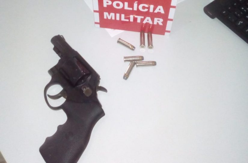 Ao realizar uma busca na residência, foi encontrado um Revólver Taurus CAL 38 com seis munições intactas.