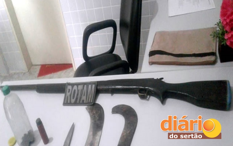 ROTAM apreende arma de fogo, faca e foice ao atender ocorrência em zona rural de Sousa