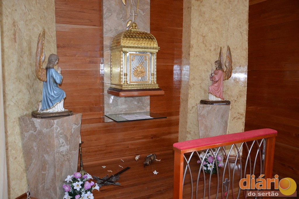 Na manhã desta quinta-feira, fiéis foram até o local para fazer orações e todos estavam espantados com o que aconteceu dentro da igreja mais antiga de Cajazeiras.