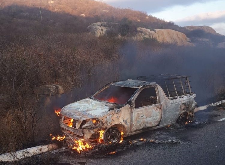 Um veículo foi totalmente incendiado na manhã desta quarta-feira (26), na rodovia que liga as cidades de Patos a Teixeira, no sertão Paraibano.