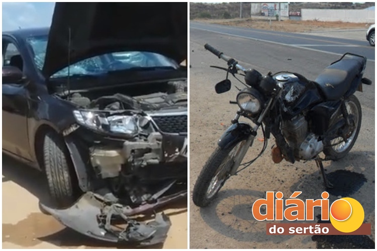 Colisão entre carro e moto deixa um homem ferido e por pouco não termina em tragédia em Cajazeiras