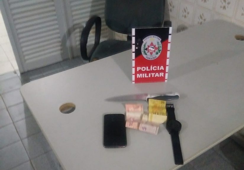 Ao realizar rondas no Pereirão, os dois homens, sendo eles foram visualizados. Um deles tentou evadir-se, sendo logo alcançado e detido pelos policiais. Com ele foi encontrado todo material subtraído da vítima, bem como uma faca.
