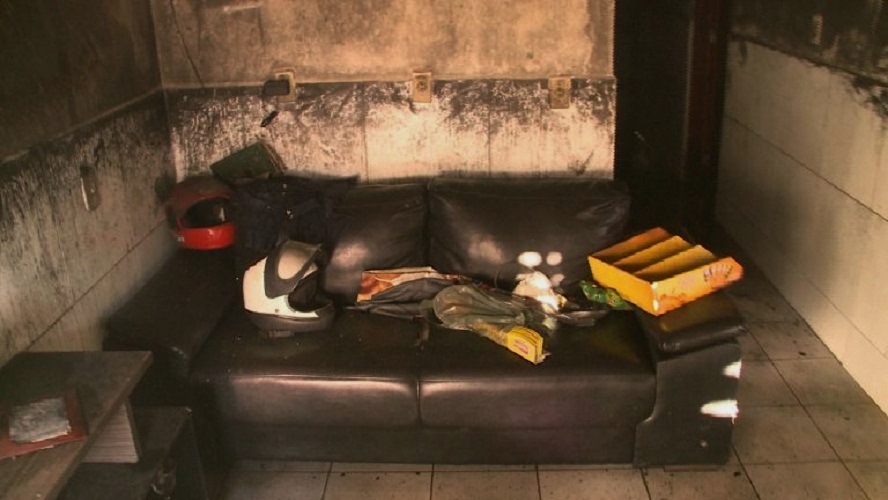 Vizinhos acionaram os bombeiros, que tiveram que arrombar uma janela para entrar e controlar as chamas que consumiam os móveis.