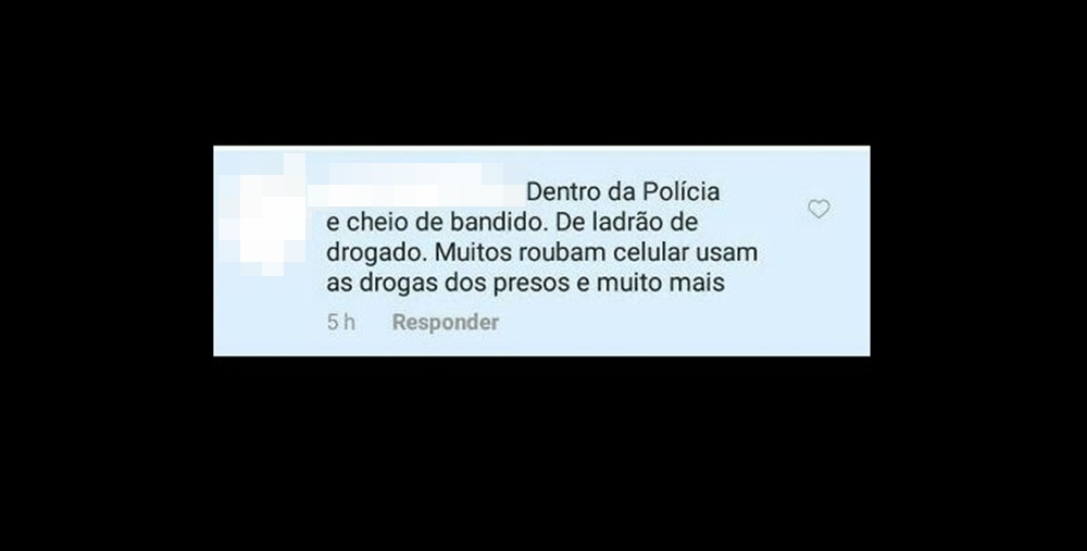Na publicação a mulher fez a seguinte declaração: “Dentro da Polícia é cheio de bandido. De ladrão de drogado. Muitos roubam celular, usam as drogas dos presos e muito mais”.