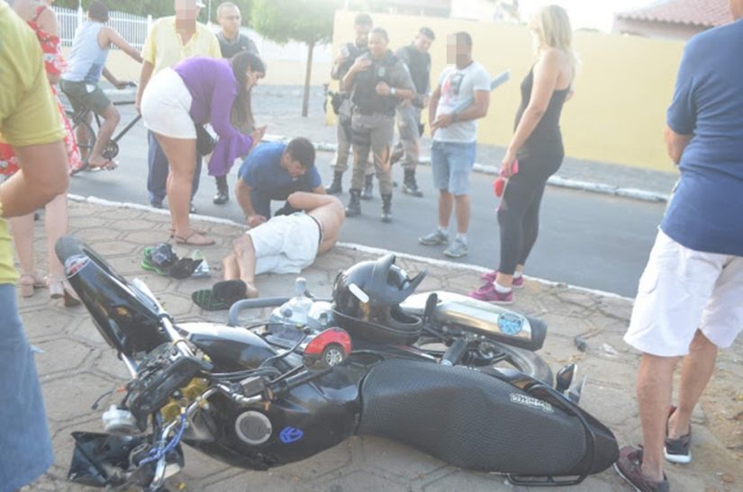 O acidente aconteceu na na Avenida Pedro Moreno Gondim. Com o impacto o jovem foi arremessado ao solo e ficou ferido.