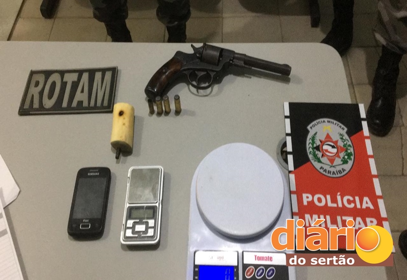 A equipe da ROTAM do 14º BPM efetuava rondas pelo local, quando avistou o suspeito e decidiu efetuar busca pessoal. Ao notar a aproximação dos militares, o suspeito tentou foragir, chegando inclusive a saltar muros de residências. Foi alcançado, detido e desarmado, posto que, durante a realização da abordagem, foi encontrada em sua cintura a arma in loco. Após ser identificado, ficou constatado que o suspeito é apontado como autor de inúmeros crimes de roubo na cidade de Sousa, segundo levantamento investigativo.
