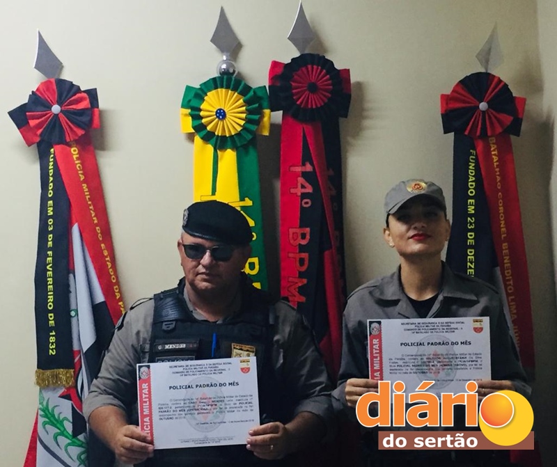 Entre todas as subunidades (1ª Cia – Sousa, 2ª Cia – Destacamentos, 3ª Cia – Pombal, e a CPE – ROTAM), através de critérios técnicos pré-estabelecidos, foram agraciados o AL CHS G. Mendes, da 1ª Cia/14ºBPM como Policial Padrão do Mês de Outubro (Operacional) e a SD PM Augustefânia, como Policial Padrão do Mês de Outubro (Administrativo).