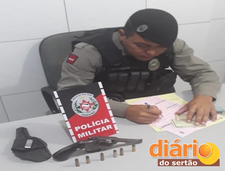 Policiais militares do 14º BPM prenderam, na noite de sábado (24), na cidade de Sousa, sertão do estado, um homem de 42 anos, por estar portando ilegalmente um revólver calibre .38.