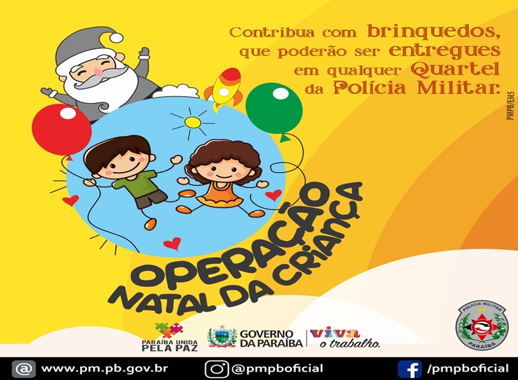 O 14º Batalhão de Polícia Militar em Sousa, sertão do estado, está realizando juntamente com a PMPB, a “Operação Natal da Criança”, com arrecadação de brinquedos para serem distribuídos com meninos e meninas em todo o estado.