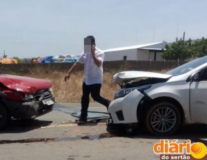 Dois veículos colidiram frontalmente na rodovia e uma pessoa ficou com ferimentos na face e foi levada para o Hospital Regional de Cajazeiras.
