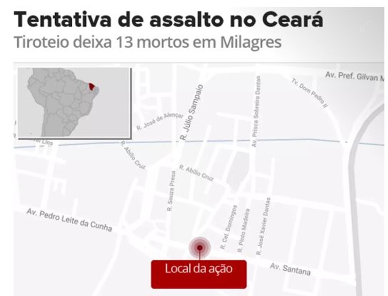 Fonte: - https://g1.globo.com/ce/ceara/noticia/2018/12/07/tentativa-de-assalto-a-banco-com-refens-deixa-mortos-apos-tiroteio-com-policia-no-ceara.ghtml