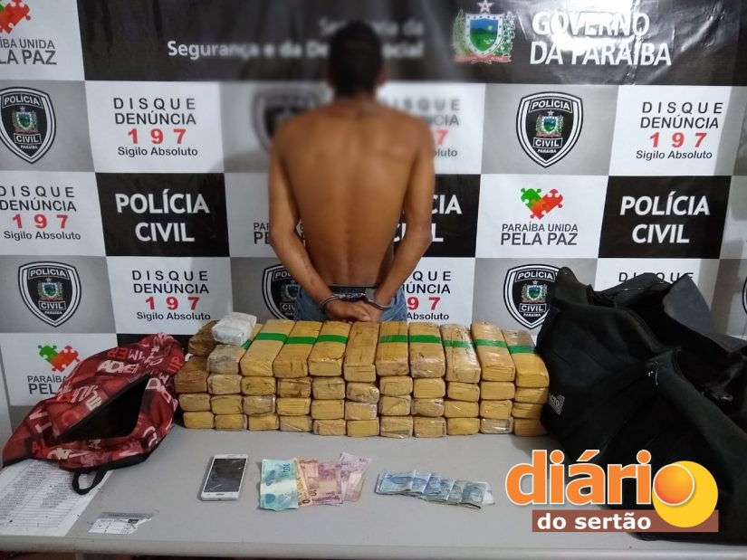 O trabalho investigativo de policiais da 15ª Delegacia Seccional, de Patos, Sertão do estado, resultou na prisão de um homem, na madrugada de sábado (26), pelo crime de tráfico de entorpecentes. A ação aconteceu em uma pousada no Centro do município, onde o suspeito, que é natural de Solânea, foi abordado em situação de flagrância, com 30 quilos de maconha e R$ 40 mil em dinheiro.