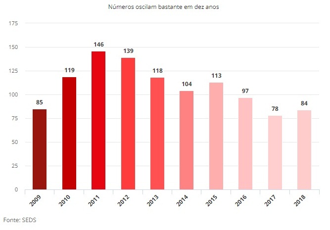 Os últimos dez anos não foram tranquilos para as mulheres da Paraíba. De 2009 a 2018, um total de 1.083 mulheres foram assassinadas. Em 2018, o número chegou a 84 mortes.