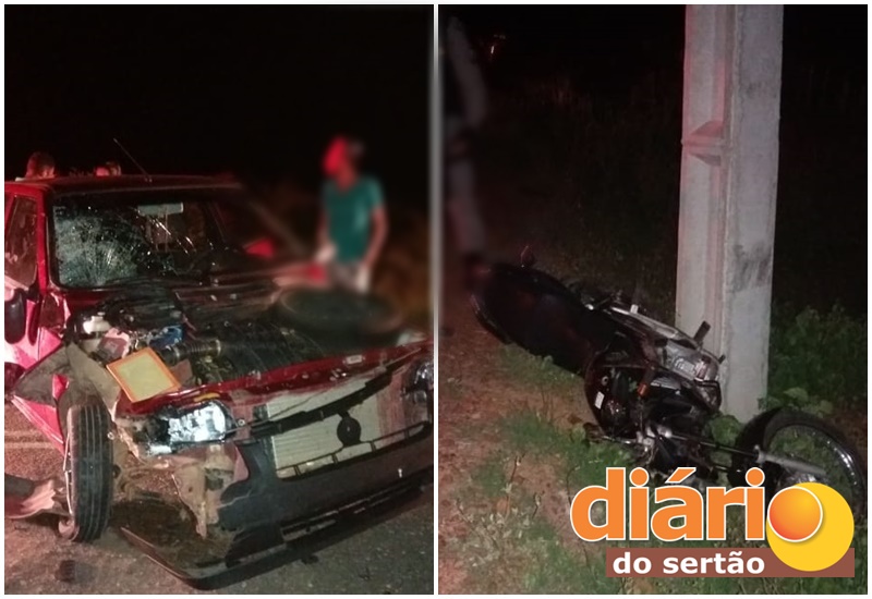 Segundo informações da Polícia Militar, o acidente aconteceu na noite de quinta-feira (21), o acidente envolvendo uma moto e um carro modelo Fiat Uno de cor vermelha acabaram colidindo violentamente. No impacto, a mulher Antonina Alves, que estava de garupa na moto, morreu no local. O condutor da moto acabou ferido e encaminhado pelo SAMU para o Hospital Regional de Cajazeiras, para receber atendimento médico.