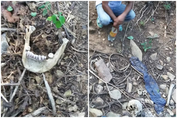 Foram encontradas partes de ossos, crânio e arcada dentária