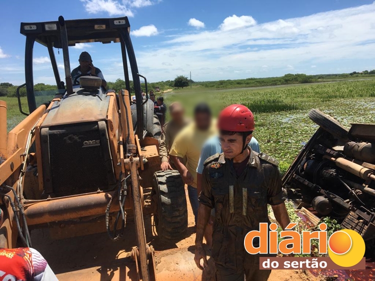 O motorista de um caminhão acabou caindo dentro de uma lagoa e por pouco o acidente não terminou em tragédia na zona rural de Catolé do Rocha, no Sertão do estado.