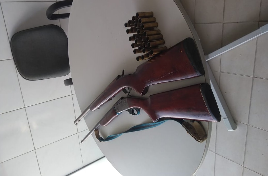 De imediato uma guarnição de Rádio Patrulha foi acionada para averiguar a informação e conseguiram apreender no referido endereço duas espingardas, sendo uma Cal 12 de fabricação caseira e outra Cal 28.