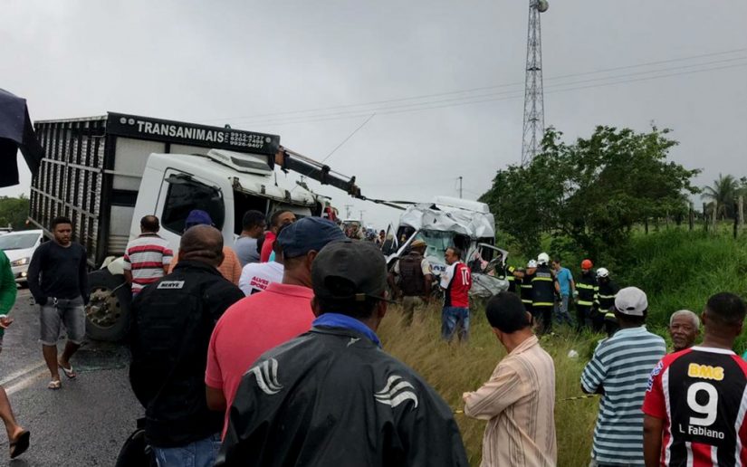 Batida frontal entre van e carreta deixa 8 mortos em rodovia da Bahia