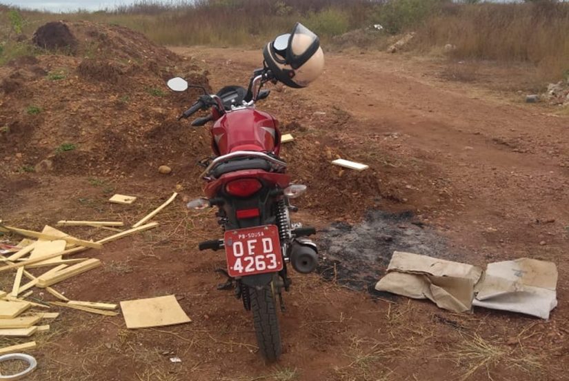 Chegando ao local a guarnição localizou o veículo e constatou que a motocicleta Honda, CG 150, de cor vermelha, placa OFD – 4263 tinha sido roubada por três suspeitos, por volta das 4 horas desse sábado nas proximidades da Lagoa dos Patos, em Sousa.