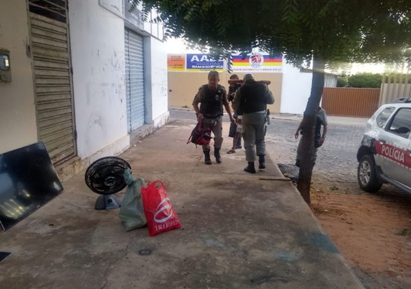 Um homem de 45 anos foi preso pela Polícia Militar com uma TV modelo Samsung e um ventilador Arno, duas mochilas e sacolas nas proximidades da AABB, no centro de Cajazeiras. A PM foi ao local após denúncia.