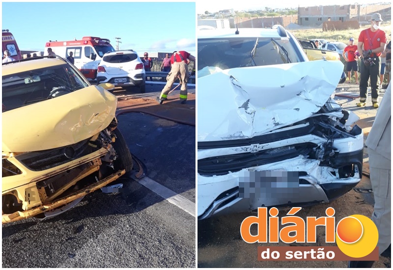 De acordo com informações da polícia militar, a colisão envolveu dois carros que seguiam em sentidos opostos. Com o impacto os veículos ficaram parcialmente destruídos.