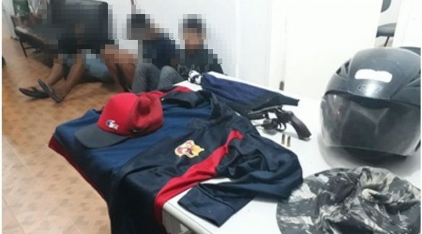 Com o trio, a polícia localizou um revólver calibre 32, com duas munições intactas, provavelmente utilizado na prática dos crimes. Também foram apreendidos com os suspeitos, uma touca ninja, um capacete, um chapéu camuflado e um blusão.