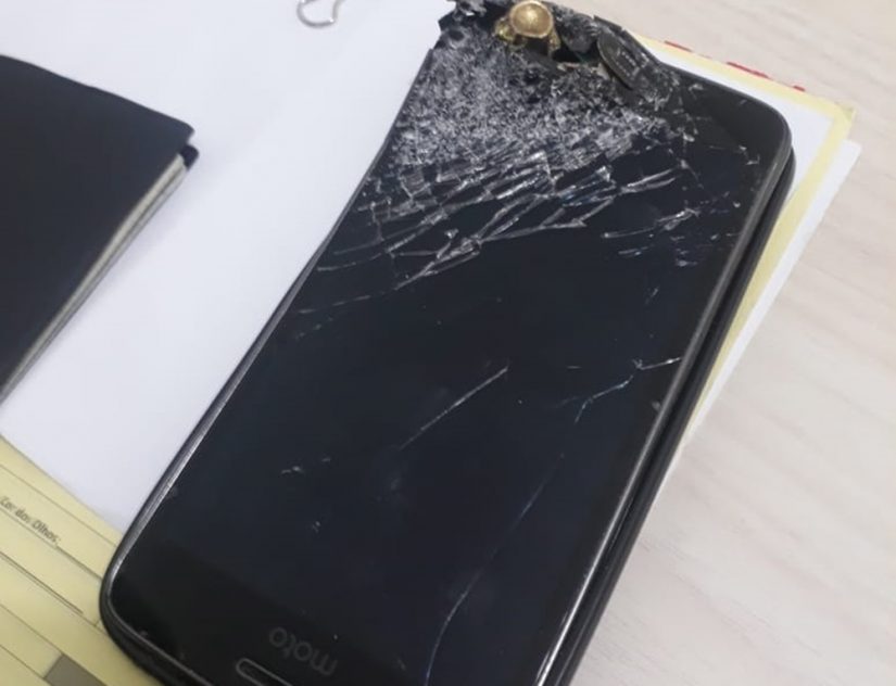 Os tiros teriam acertado o braço e as costas. Outro disparo acertou o celular da vítima, onde a bala ficou alojada.