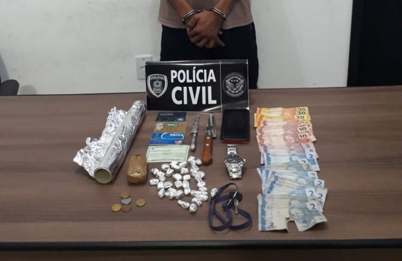 Segundo a polícia, na residência foi encontrado 36 trouxinhas de maconha e um tablete com 50 gramas da mesma substância.