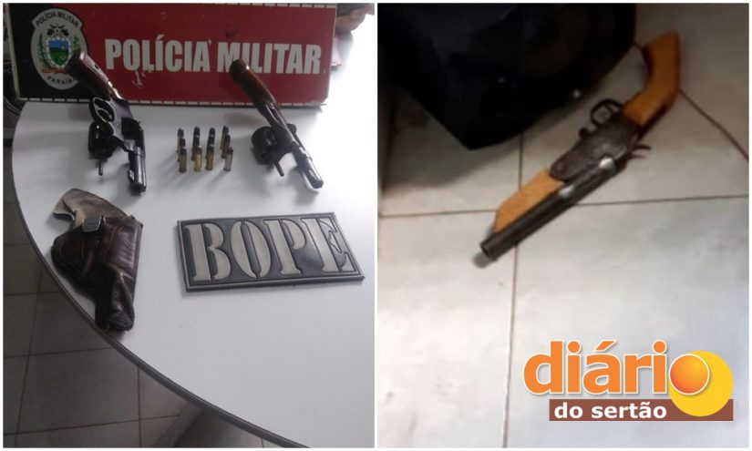Ainda durante diligências, motivadas pelo crime de homicídio, a equipe do BOPE, sob o comando do 3º SGT Duarte, no Sítio Riacho dos Alcinos, zona rural de Vieirópolis, se deparou com um veículo marca Toyota, modelo Hilux, cor branca, placas ONA – 1452, Luis Gomes/RN, e durante abordagem veicular, foram localizados dois revólveres marca Taurus, com 06 munições intactas em cada uma das armas. Na ocasião foram presas duas pessoas que estavam a bordo do veículo.
