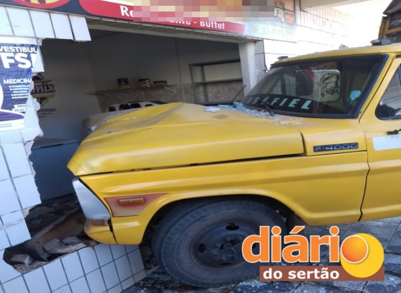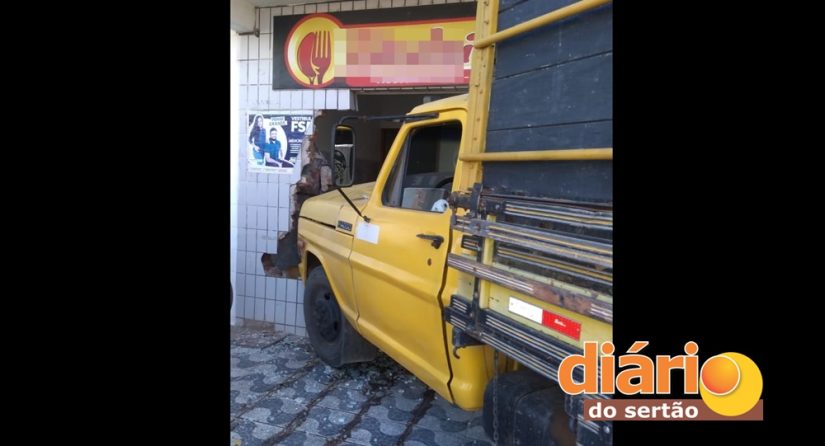 Motorista perde o controle de caminhão, invade restaurante e acaba ferido em Sousa