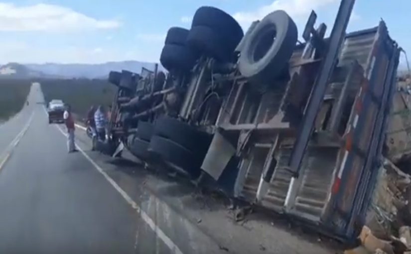 Caminhão de carga tomba em rodovia e por pouco acidente não termina em tragédia, na região de Patos