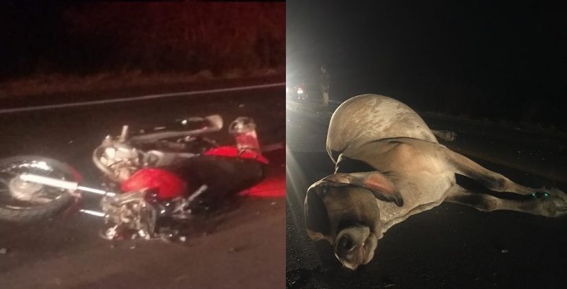 Segundo a Polícia Rodoviária Federal, o homem colidiu a moto de vermelha que pilotava com o animal, caiu ao solo e foi a óbito no local.